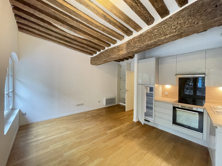 Rue des Fossés Saint Bernard, au 1er étage dans un immeuble ancien.
