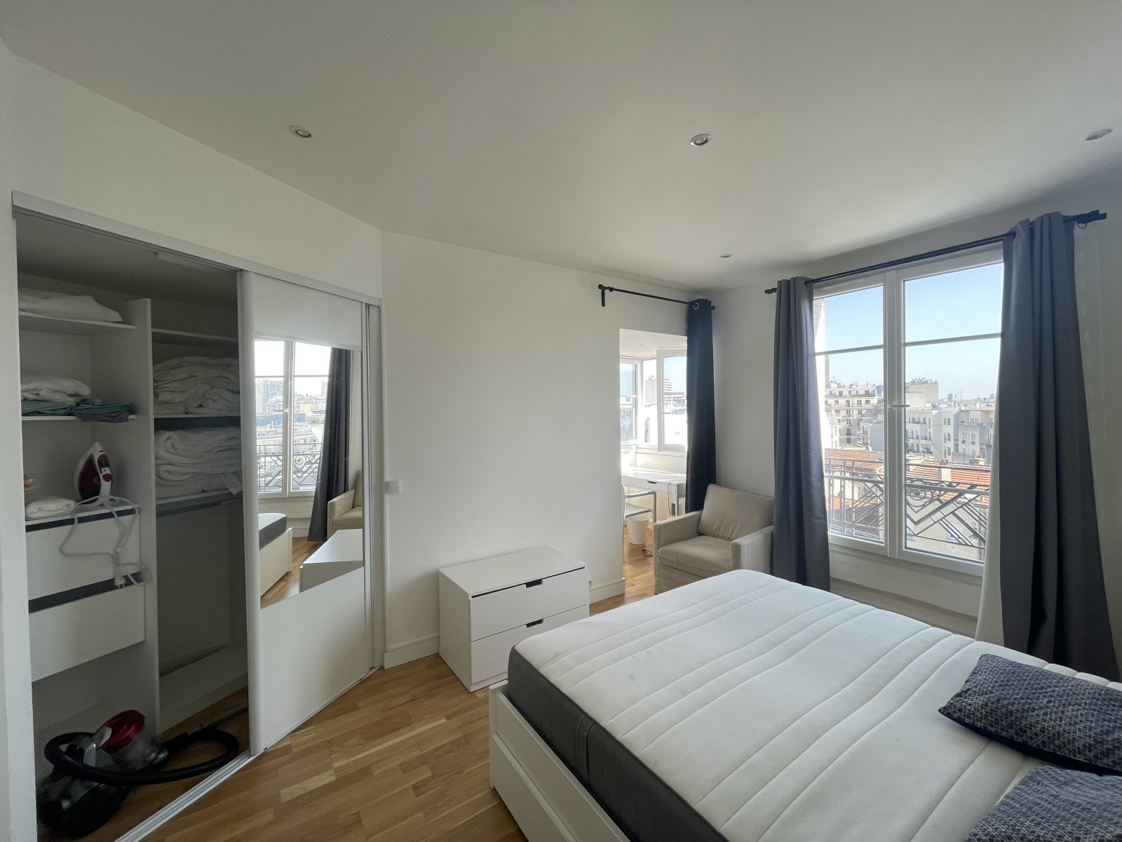 Parquet au sol, fenêtres en double vitrage, chauffage inclus dans les charges.
