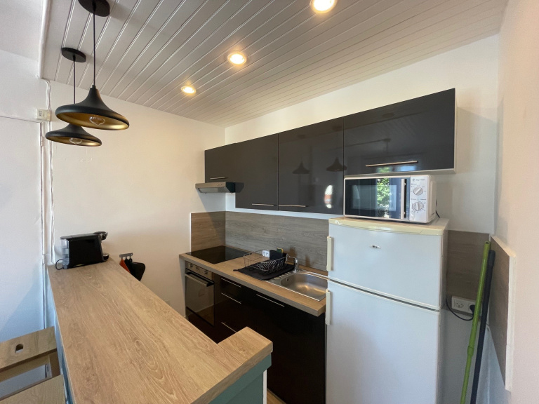 Il se compose d'un séjour avec une cuisine ouverte et entièrement équipée, d'une chambre avec placards aménagés, ainsi que d'une salle de bains avec wc.